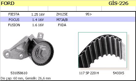 EKSANTRİK GERGİ SETİ FIESTA V-IV 1.6 16V FOCUS 1.4 16V C-MAX (GATES+İNA+SKF)