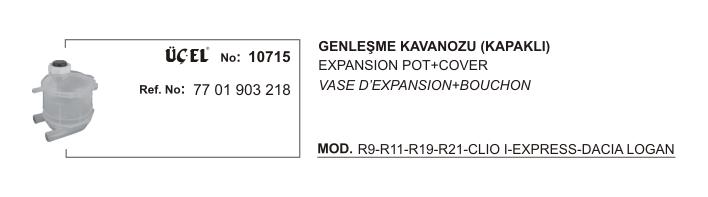 GENLEŞME KAVANOZU 10715 R9 11 19 21 CLIO-I EKSPRES DACIA LOGAN (KAPAKLI)