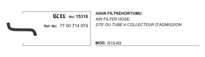 HAVA FİLTRE HORTUMU 15316 R9 R19 7700714974