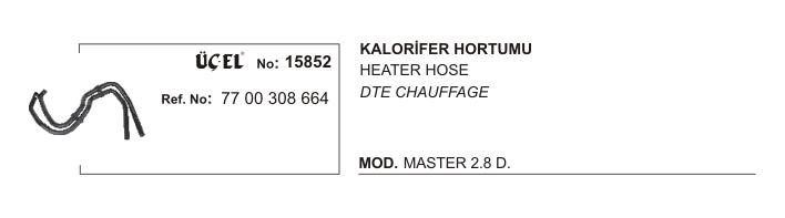 KALORİFER HORTUMU 15852 MASTER 2.8 DTI S9W 7700308664