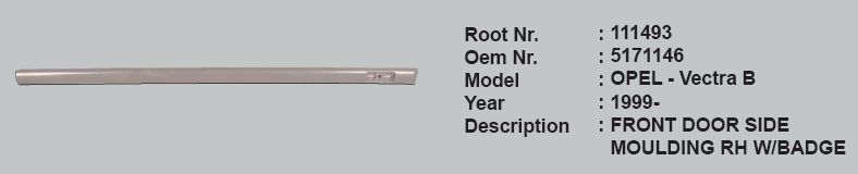 KAPI ÇITASI ÖN SAĞ 5171146 111493 VECTRA-B (99-) ARMALI ASTARLI