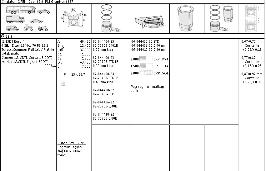 MOTOR SEGMANI 0684441000 613761000 080 69,6 DOBLO PALIO ALBEA 1.3JTD