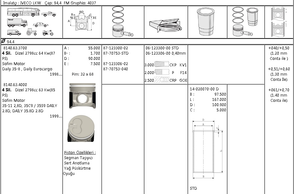 MOTOR SEGMANI 61233060 040 94,4 DUCATO BOXER JUMPER 2.8-D