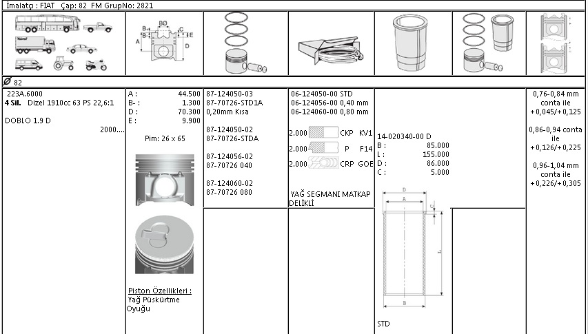 MOTOR SEGMANI 61240500 STD 82,0 DOBLO 1.9D 1.9 JTD