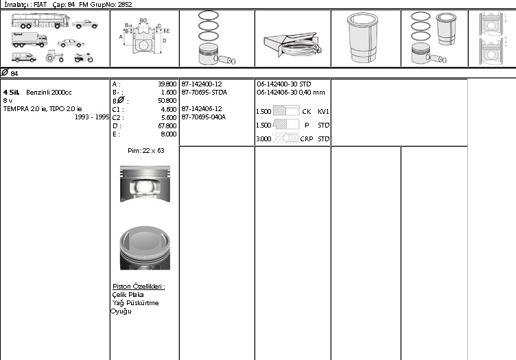 PİSTON SEGMAN 8770695 040 8714240612 TEMPRA 2.0 8V 84MM