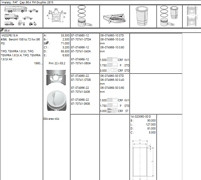 PİSTON SEGMAN 8770741 08000AG 86,4 TEMPRA SLX 1600