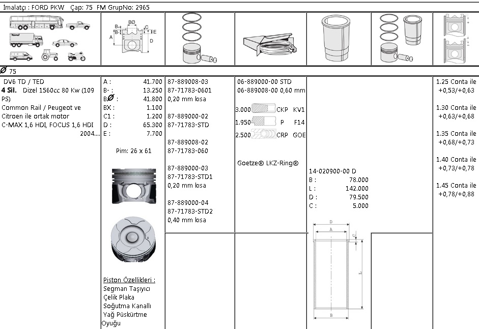 PİSTON SEGMAN 8771783 STD 8788900002 75,0 MM P307 1.6 HDI DW6 C4 JUMPY FOCUS