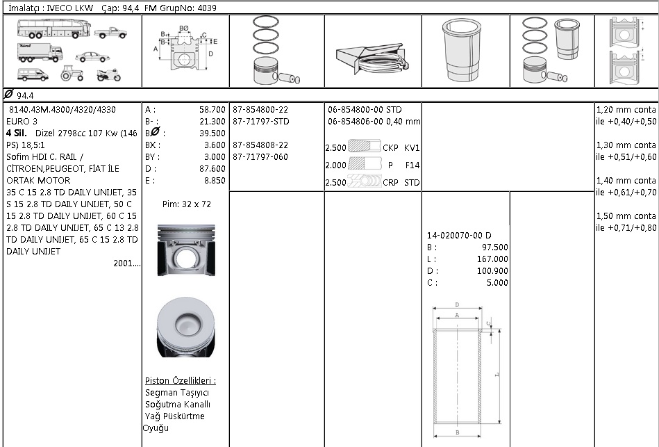 PİSTON SEGMAN 8771797 060 8785480822 BOXER 2.8 HDI DUCATO JUMPER