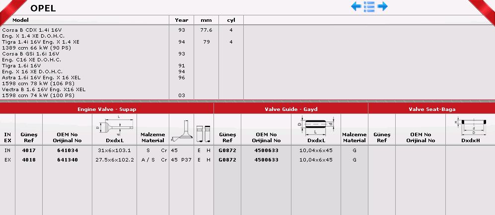 SİBOP GAYDI G0872 IN 8 EX 8 ASTRA 1.4 1.6 16V