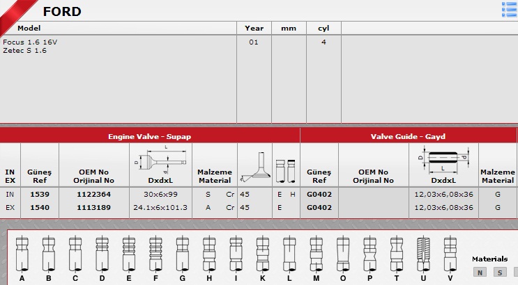 SİBOP TAKIMI 1539 1540 IN 8 EX 8 FOCUS (01-) 1.6 16V