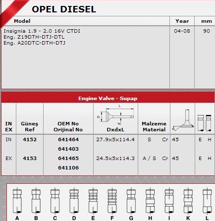 SİBOP TAKIMI 4152 4153 IN 8 EX 8 INSIGNIA 2.0 CDTI 1.9 CDTI 16V