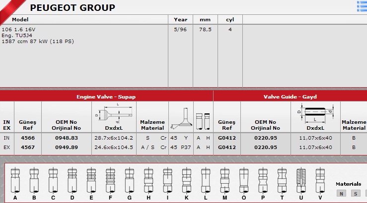 SİBOP TAKIMI 4566 4567 IN 8 EX 8 P106 GTI-16V (TU54)