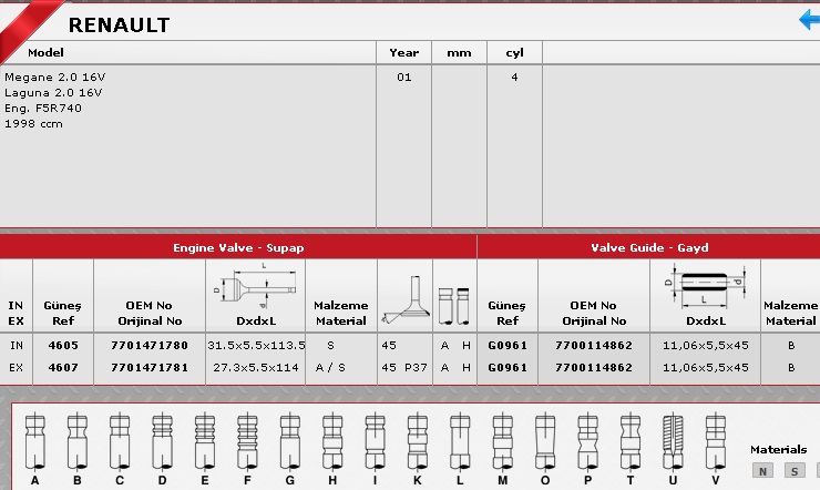 SİBOP TAKIMI 4605 4607 IN 8 EX 8 MEGANE 2.0 16V (F5R)