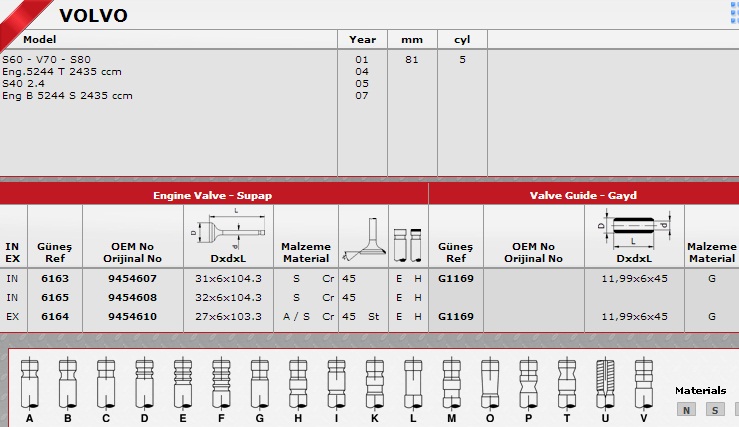 SİBOP TAKIMI 6163-6164 8IN 8EX VOLVO S60 C70 S80-16V